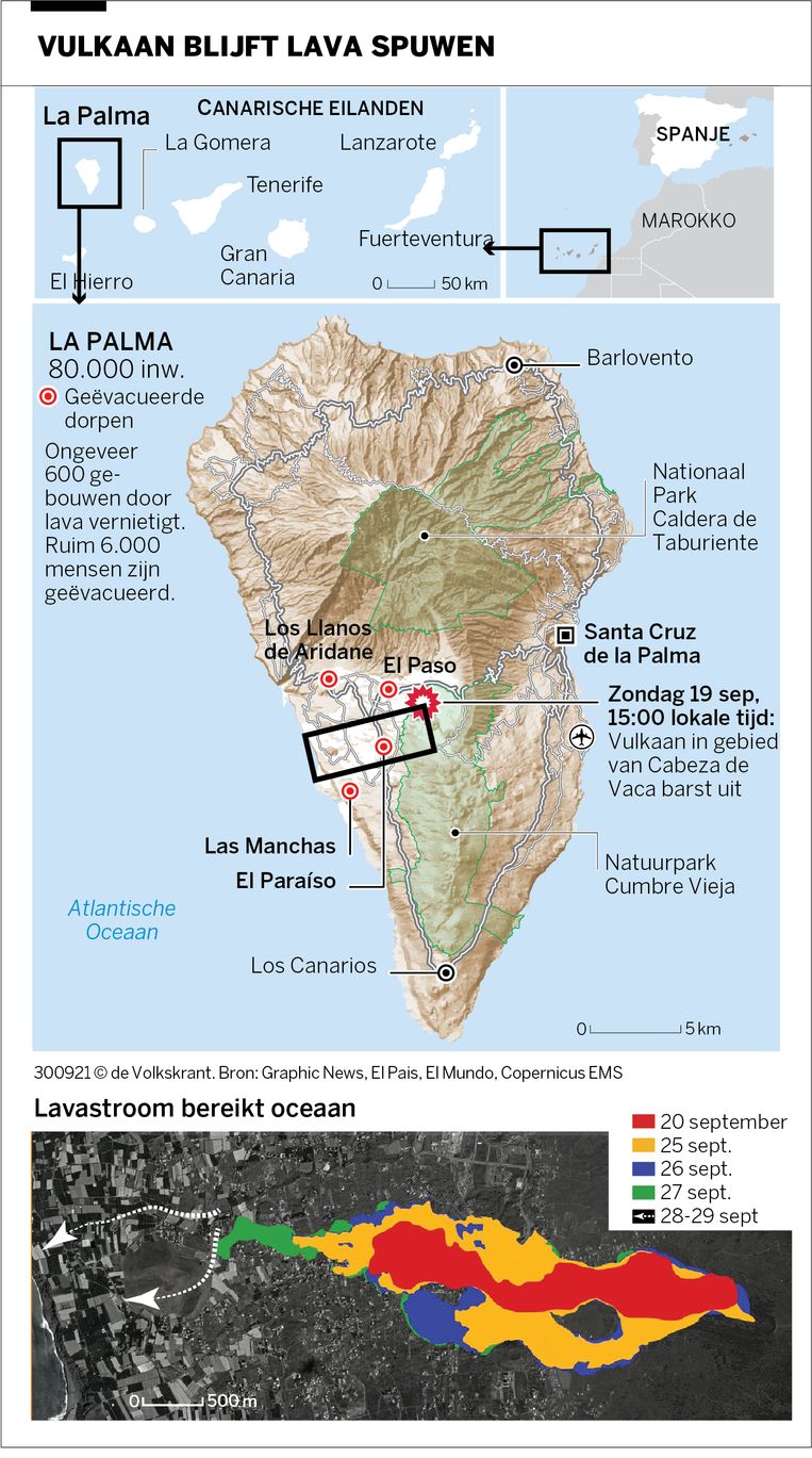 Hoewel la Palma bekend staat als een prachtig groen eiland kan het contrast met het troosteloze met zwarte lava bedekte oppervlak van het eiland niet groter zijn. La Palma volcano evacuees see no end to ordeal since September 19 eruption. The new flows are already having an impact on La Palma which is part of the Canaries archipelago off the coast of northwestern AfricaAccording to the latest data from the European observation system Copernicus the lava has destroyed 2146 buildings and covered 9012 hectares.