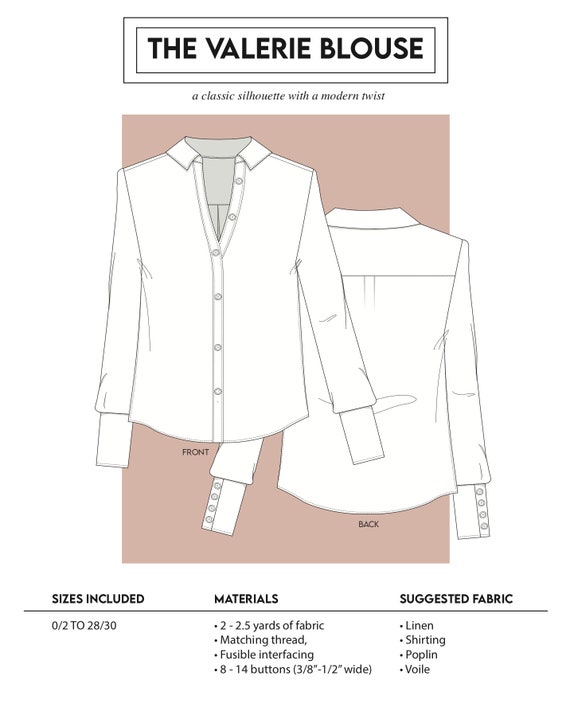 Blouse Sewing Pattern In Women S Sizes Us 0 24 Eu 30 54 Etsy Uk